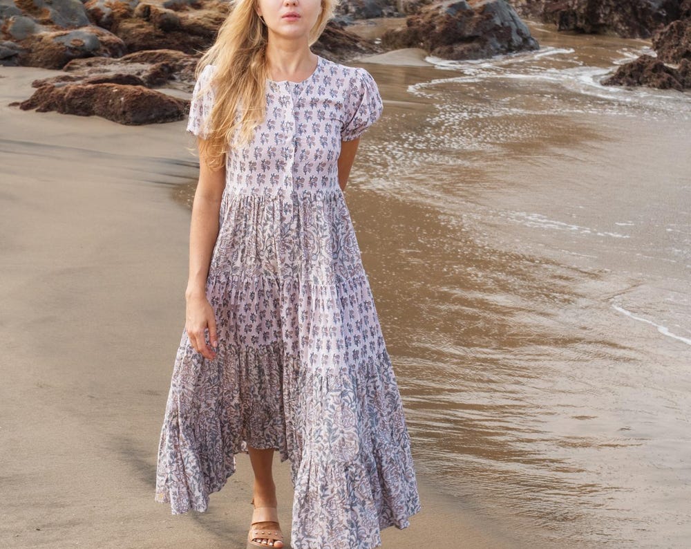 Block print dress, Women dress, Cotton Summer Dress, Floral Boho Beach Wedding Dress, Vacation Bohemian Long Maxi Pregnancy Button Dress