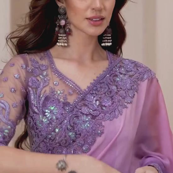 Chiffon Classic Saree With Resham Work For Ceremonial