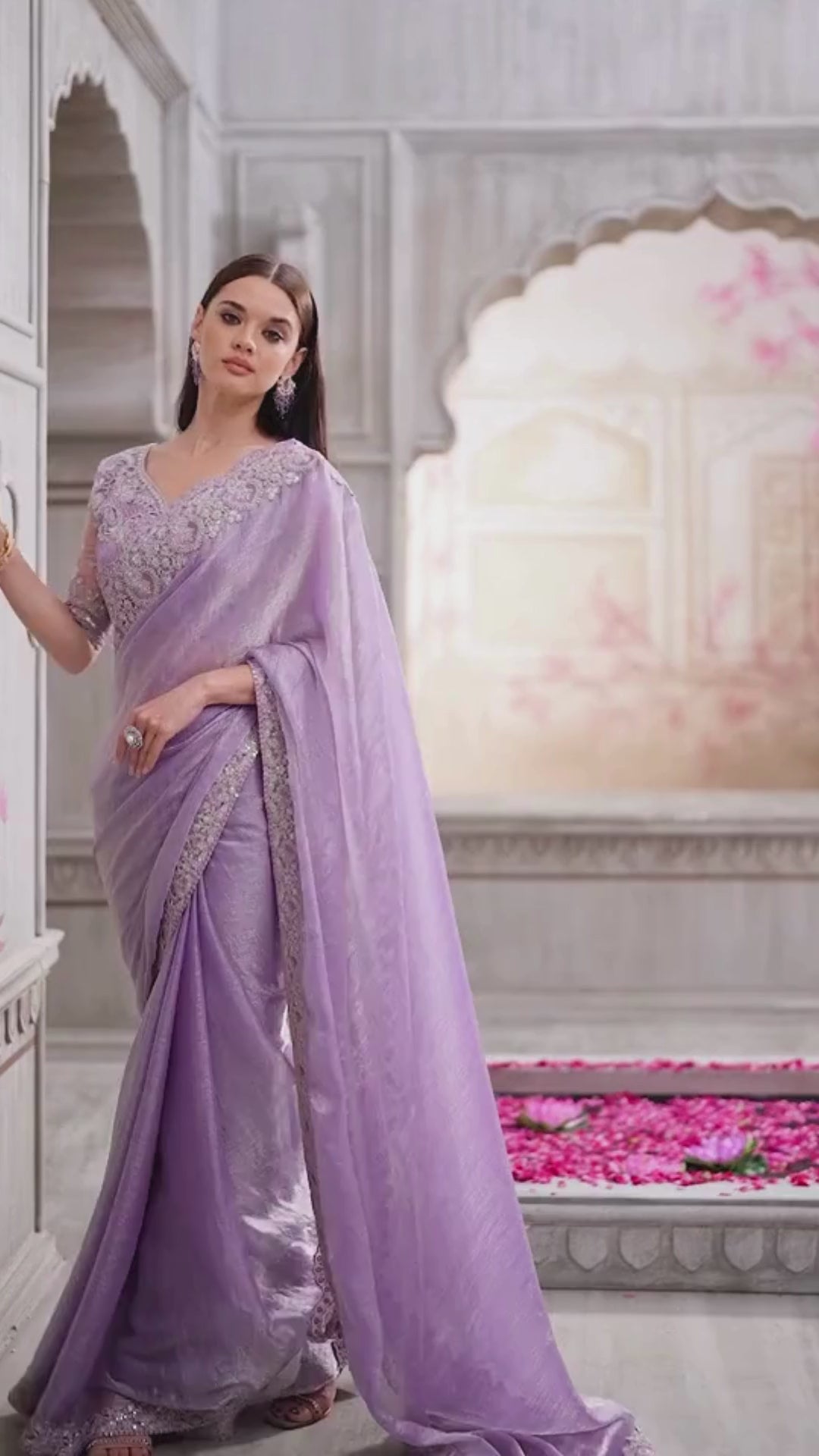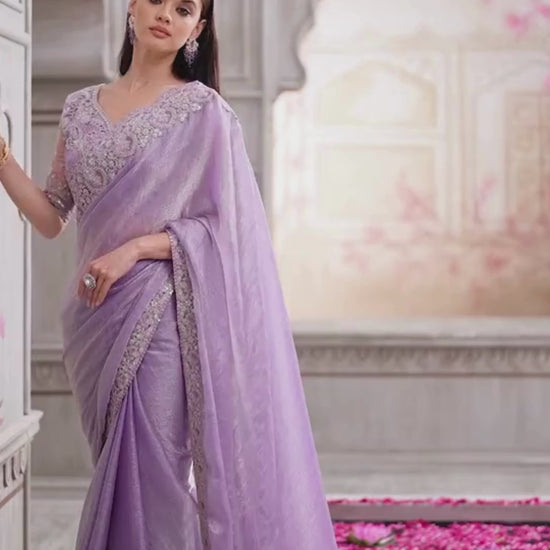 Chiffon Silk Traditional Saree In Violet With Embroidered Work