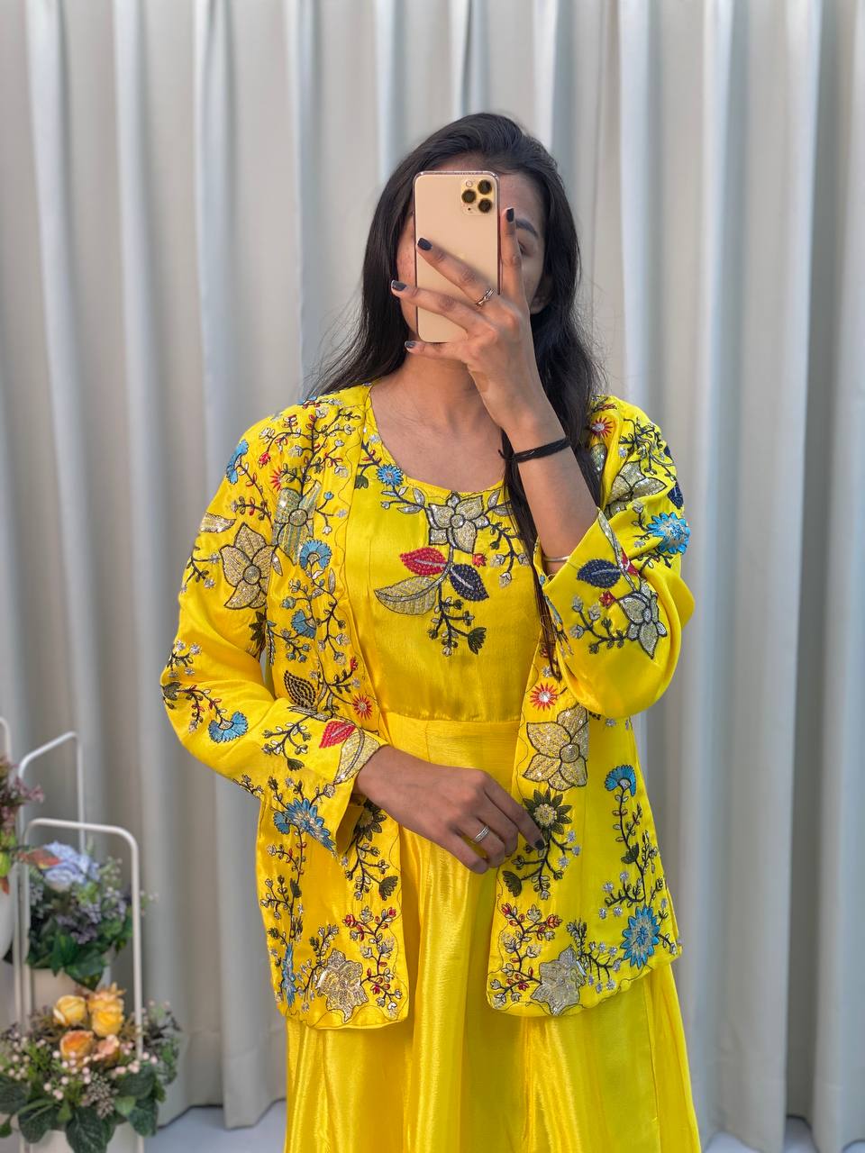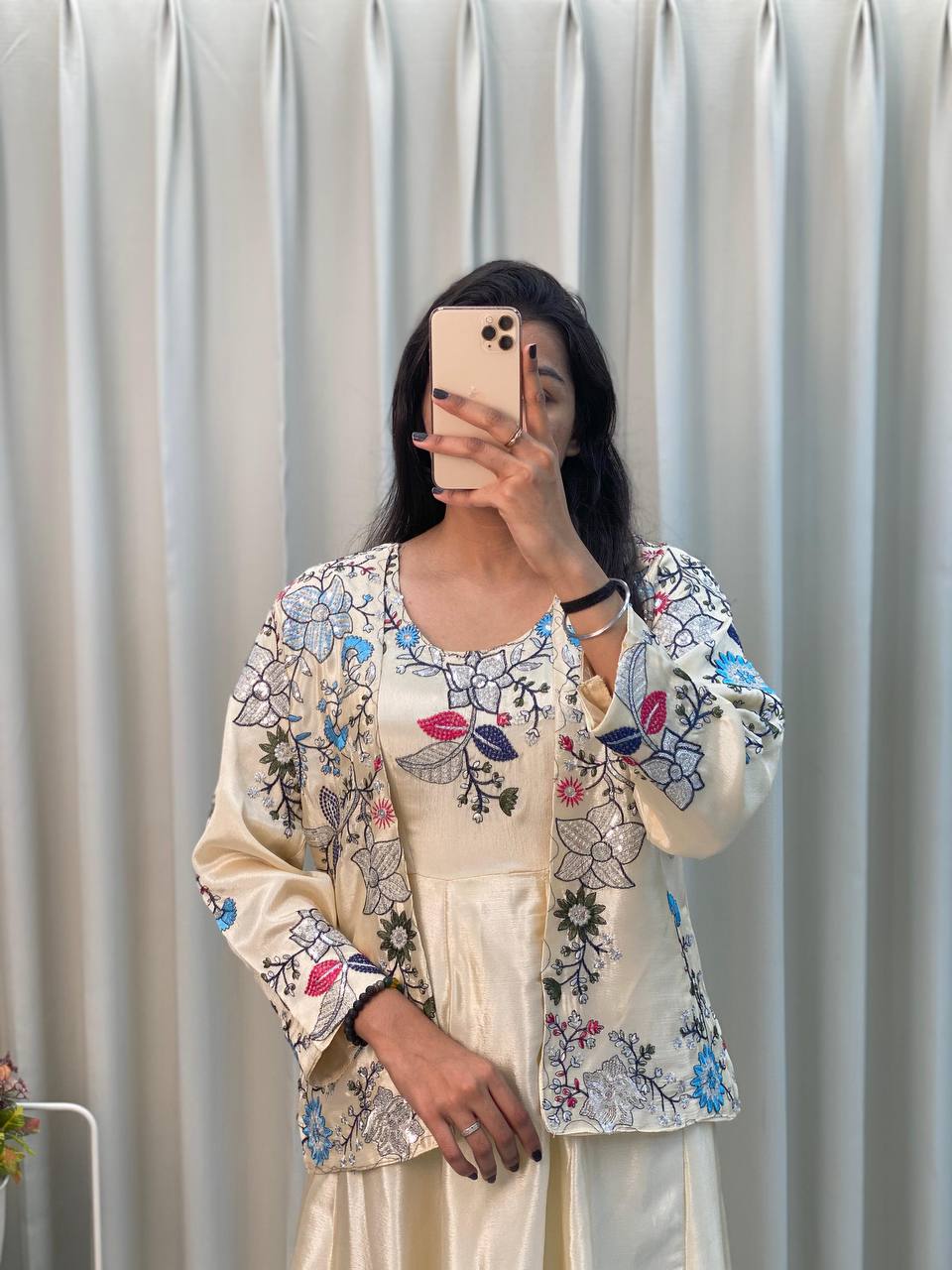 "Chinon Fabric Koti & Gown Set with Cording Sequence Embroidery β Free Size, Full-Stitched"