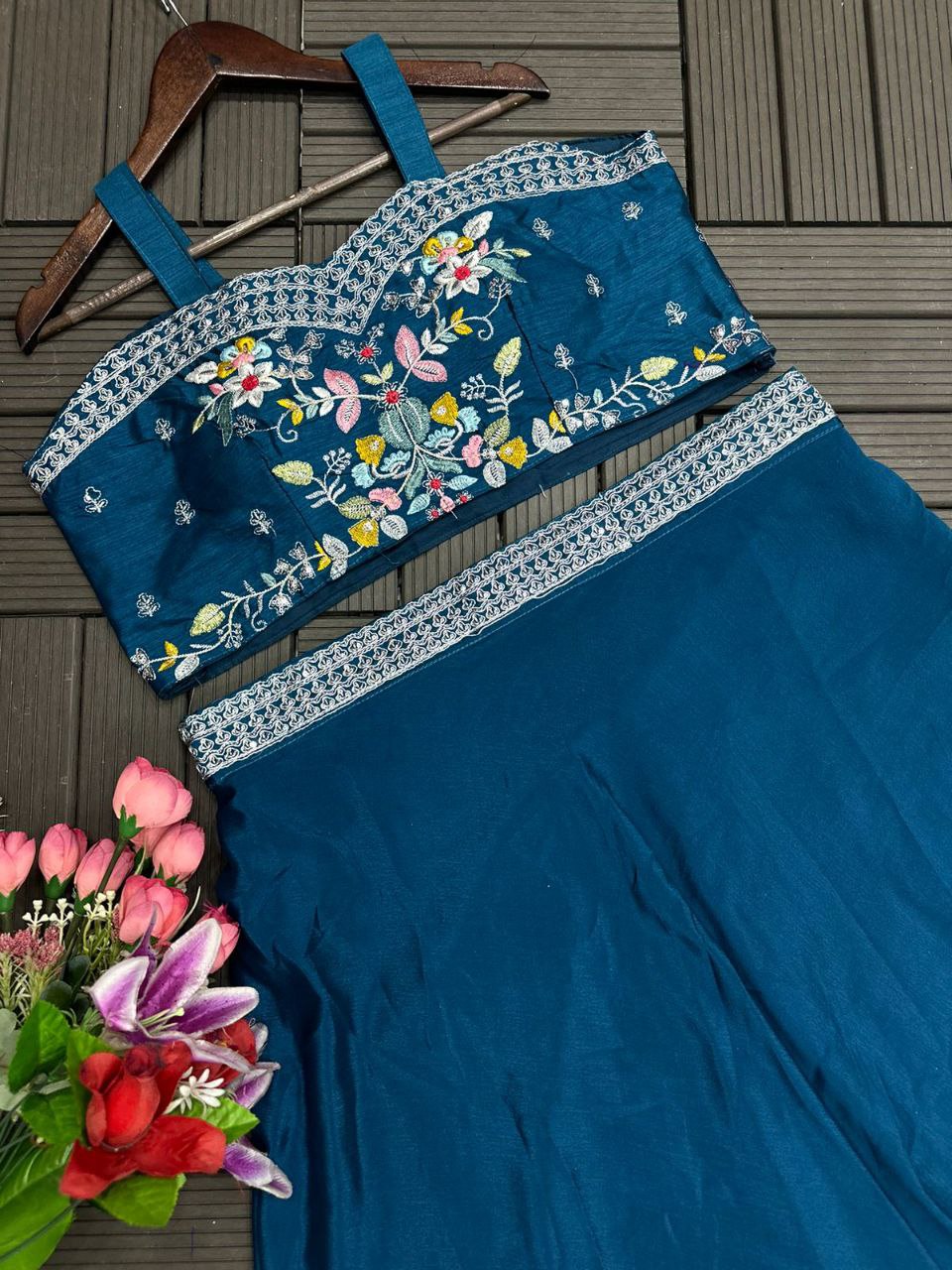 "Elegant Chinon Lehenga Set with Fully Stitched Jacket & Embroidered Blouse"