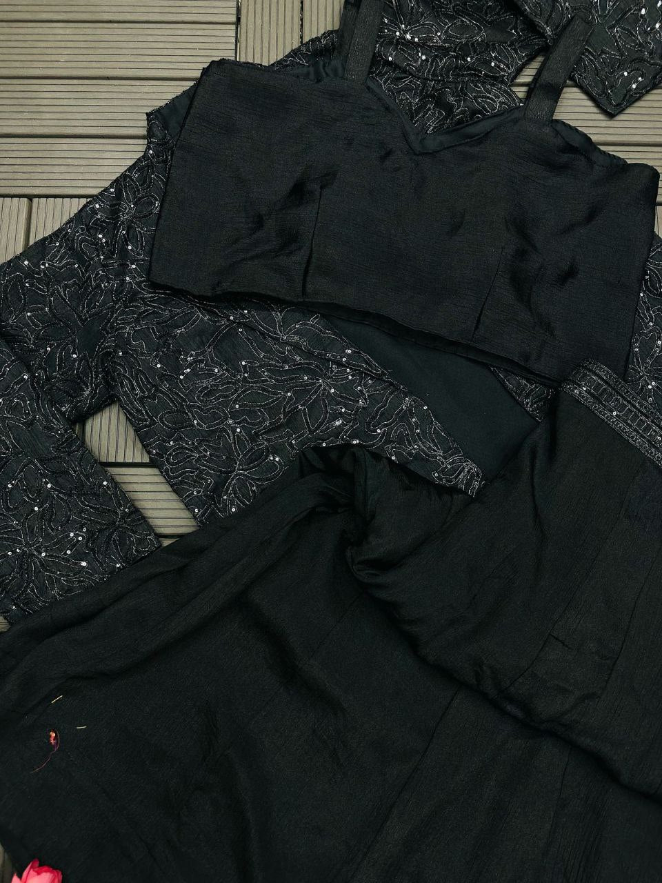 ⭕ PLAZZO FABRIC: Chinon with Embroidery Cording Work