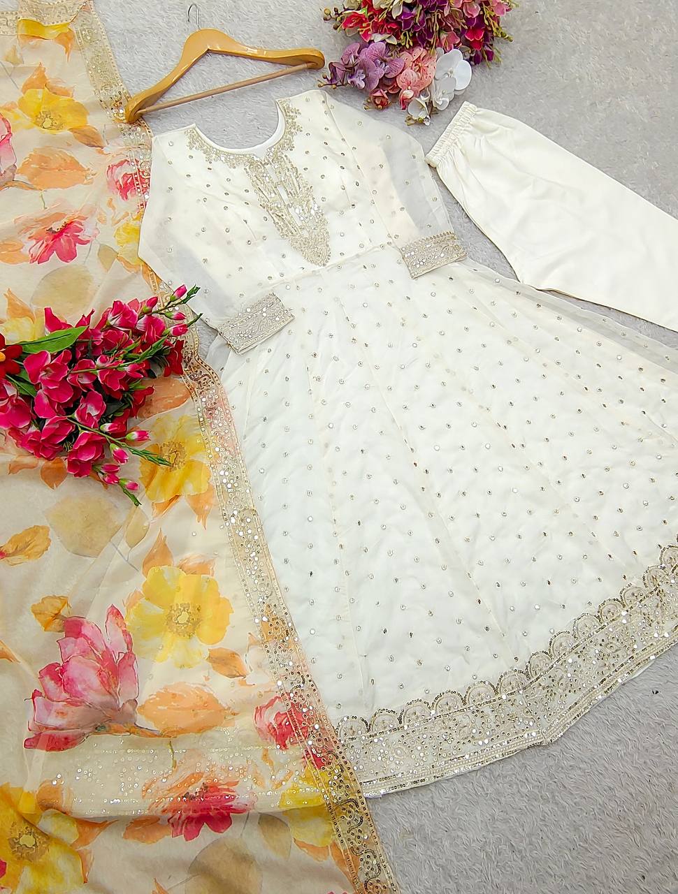 Gwon Fabric: Pure Tebby Organza Silk with heavy embroidery and 5mm sequence work on the sleeves (attached ped).