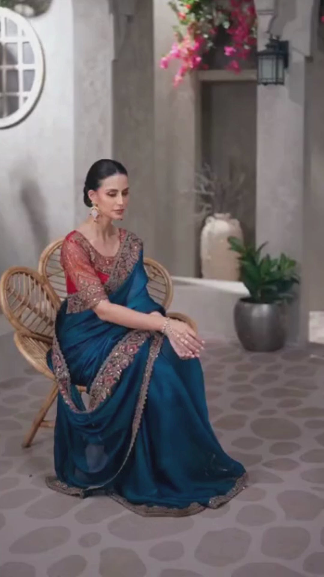 Embroidered Work Chiffon Classic Saree In Teal For Party