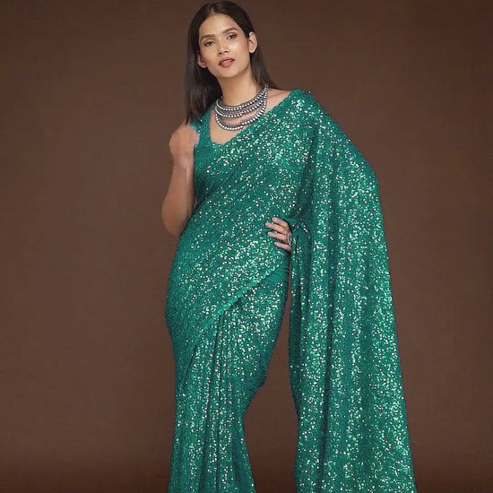 Georgette Trendy Saree With Sequins Work For Party In Teal