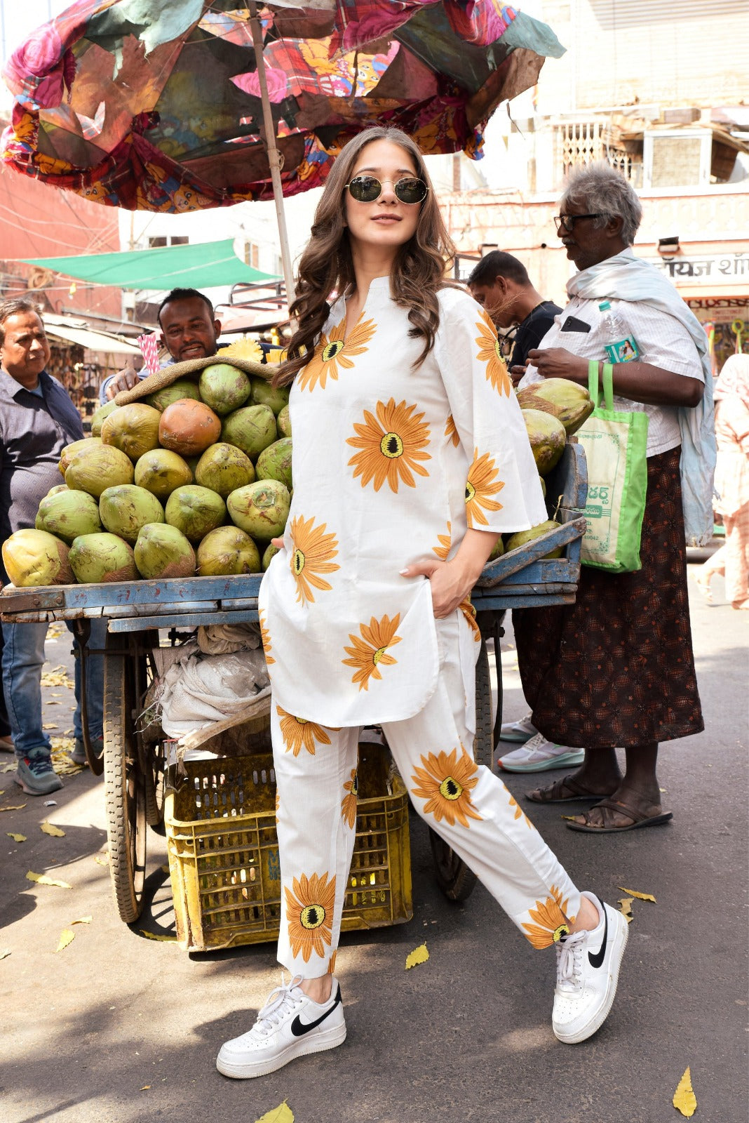 Mandarin Collar Floral Printed Pure Cotton co-ord set