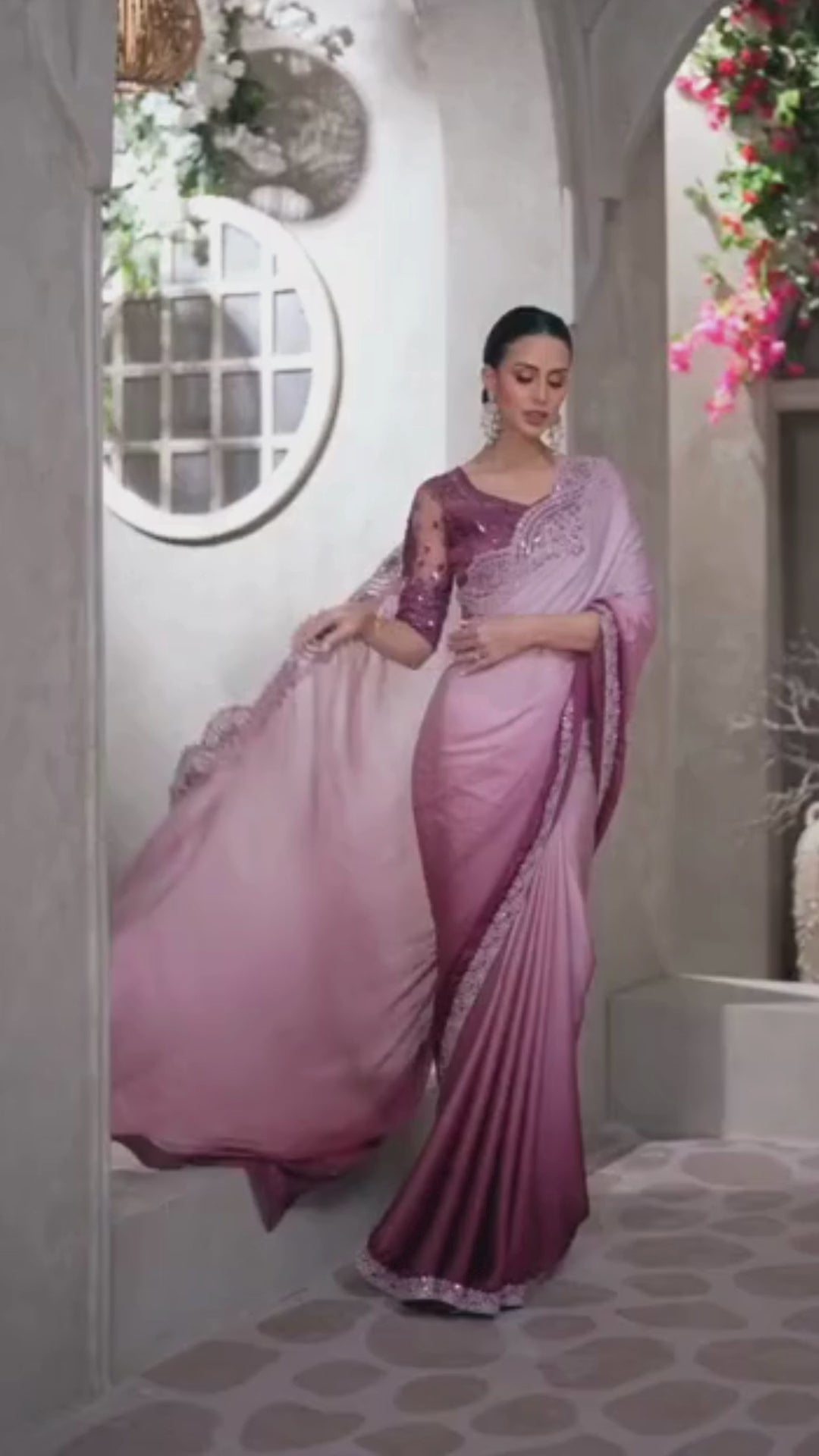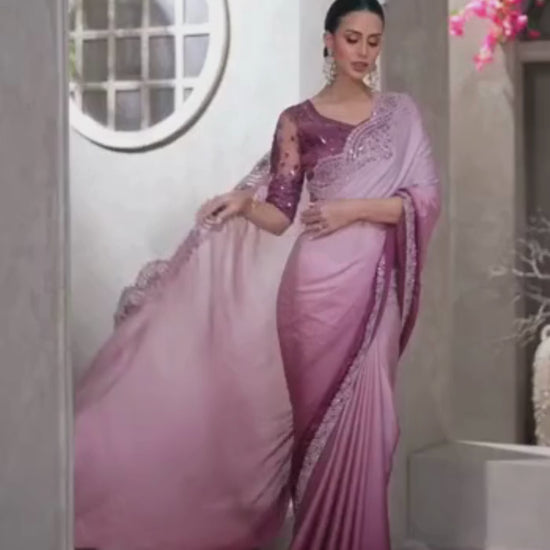 Pink And Wine Chiffon Resham Work Traditional Saree For Women