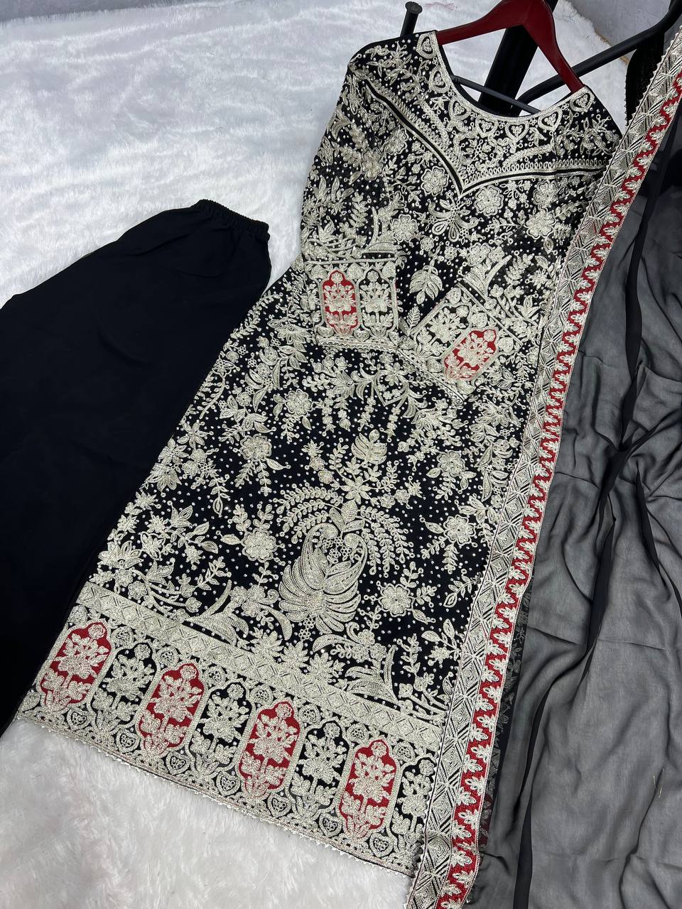 Presenting New Collection In Heavy Georgette Top-Plazzo And Dupatta Set Fully Stitched Ready To Wear