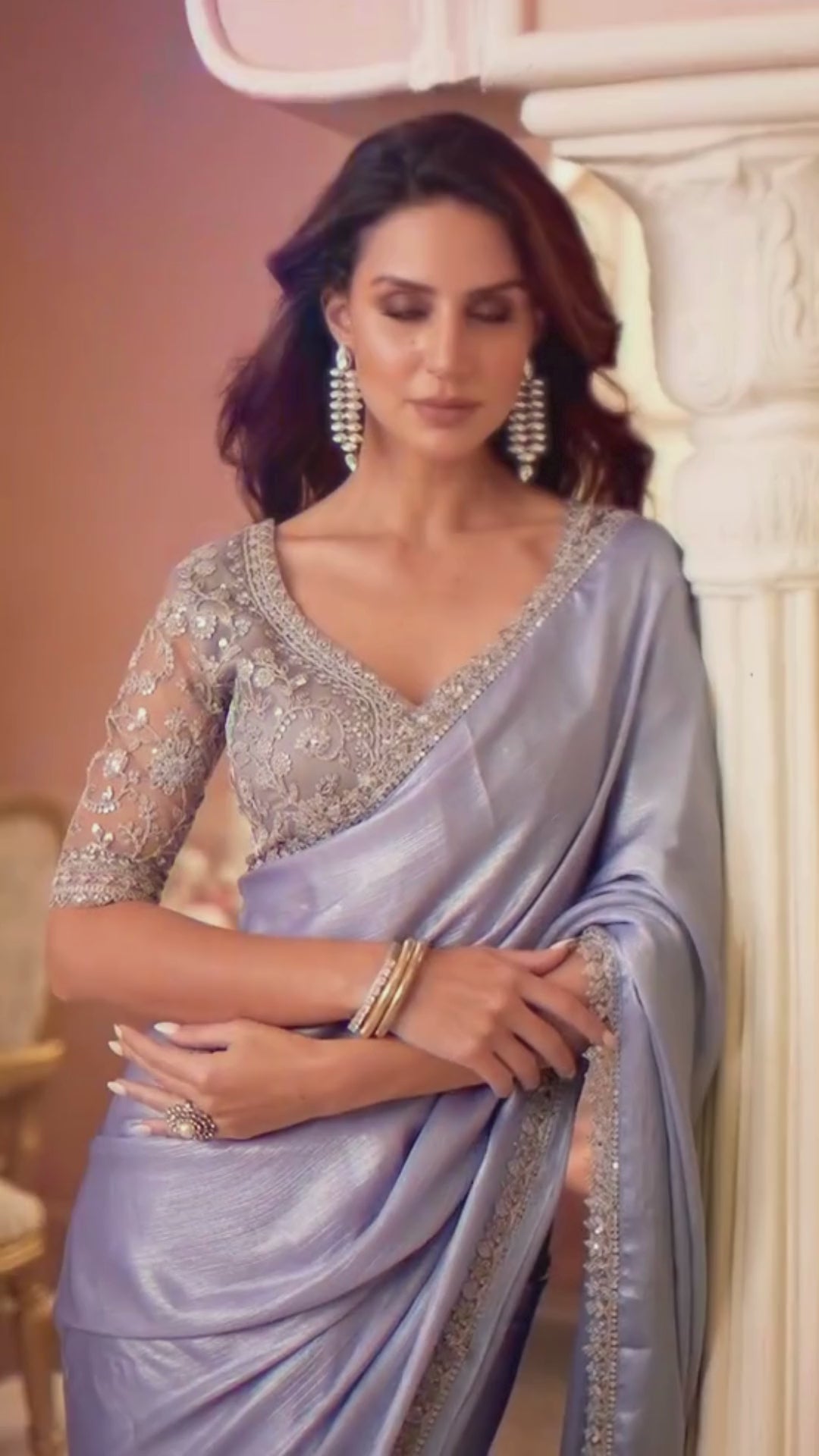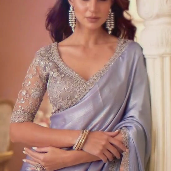 Resham Work Shimmer SIlk Trendy Saree In Light Blue