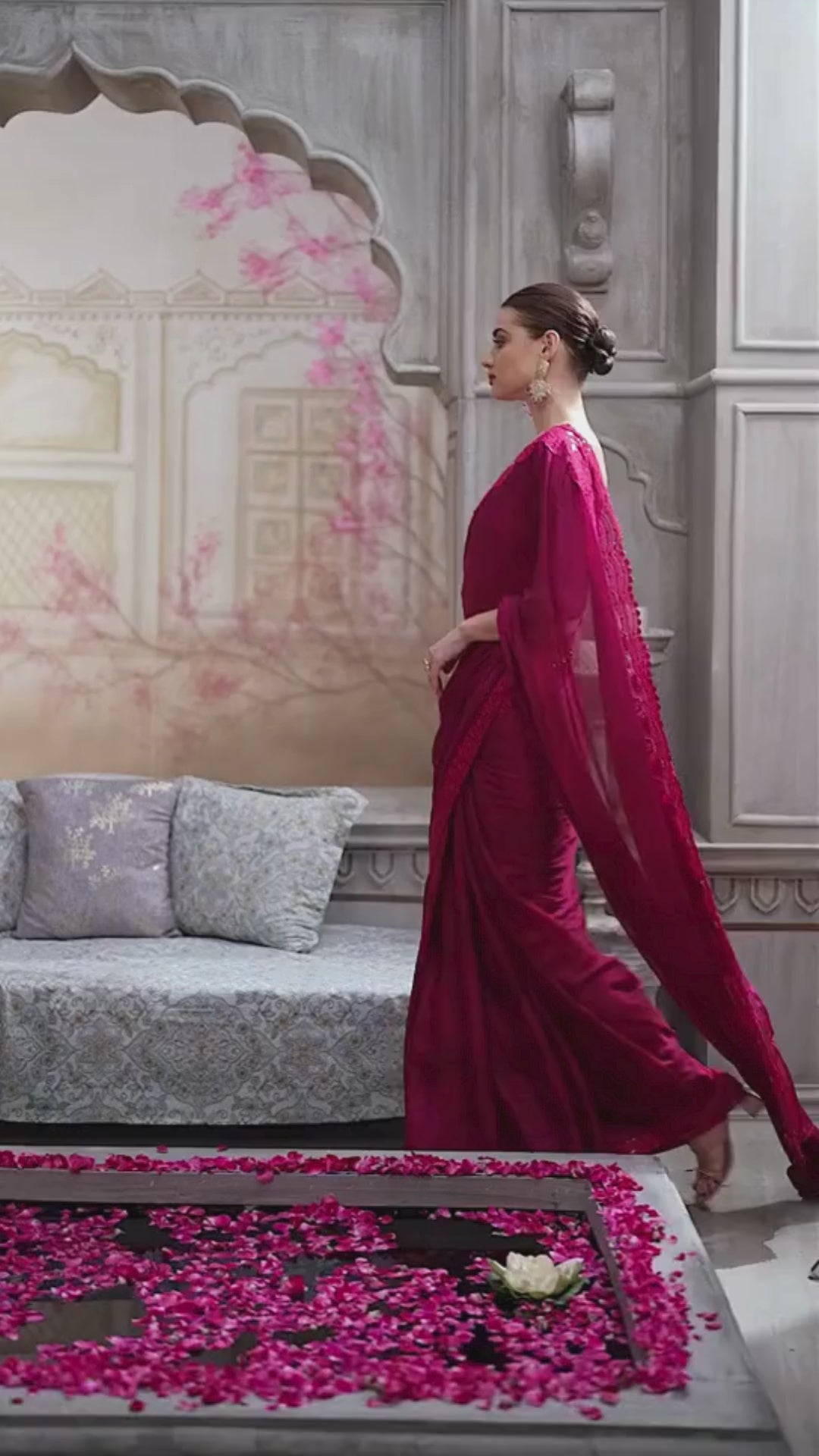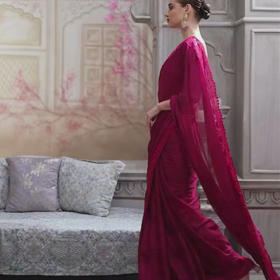 Rose Pink Shimmer Silk Resham Work Traditional Saree For Women