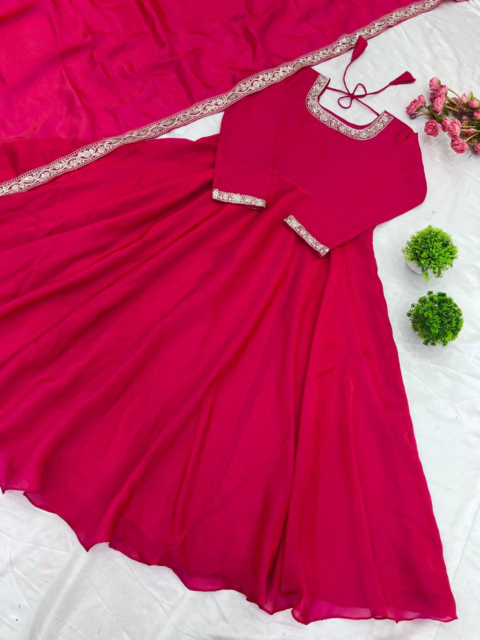 "Royal Elegance: Heavy Fandy Silk Gown with Embroidery Sequence Work & Full Flair"