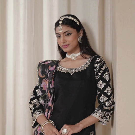 Silk Blend Punjabi Suit In Black With Embroidered Work For Women