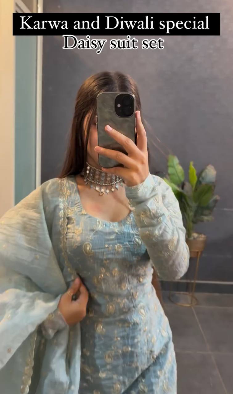 - Embroidery: Stunning thread sequence work all over the dupatta , giving it an elegant, detailed finish