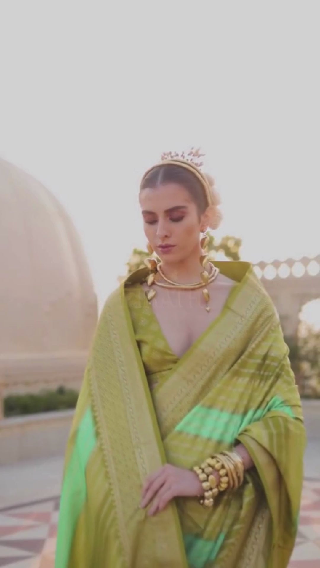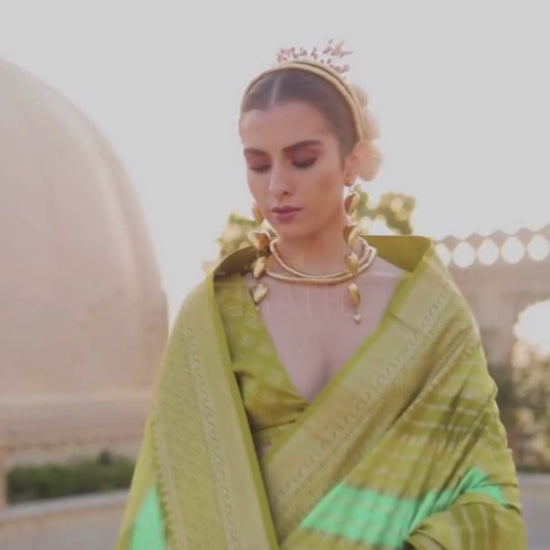 Viscose Silk Traditional Saree In Olive And Turquoise With Print Work