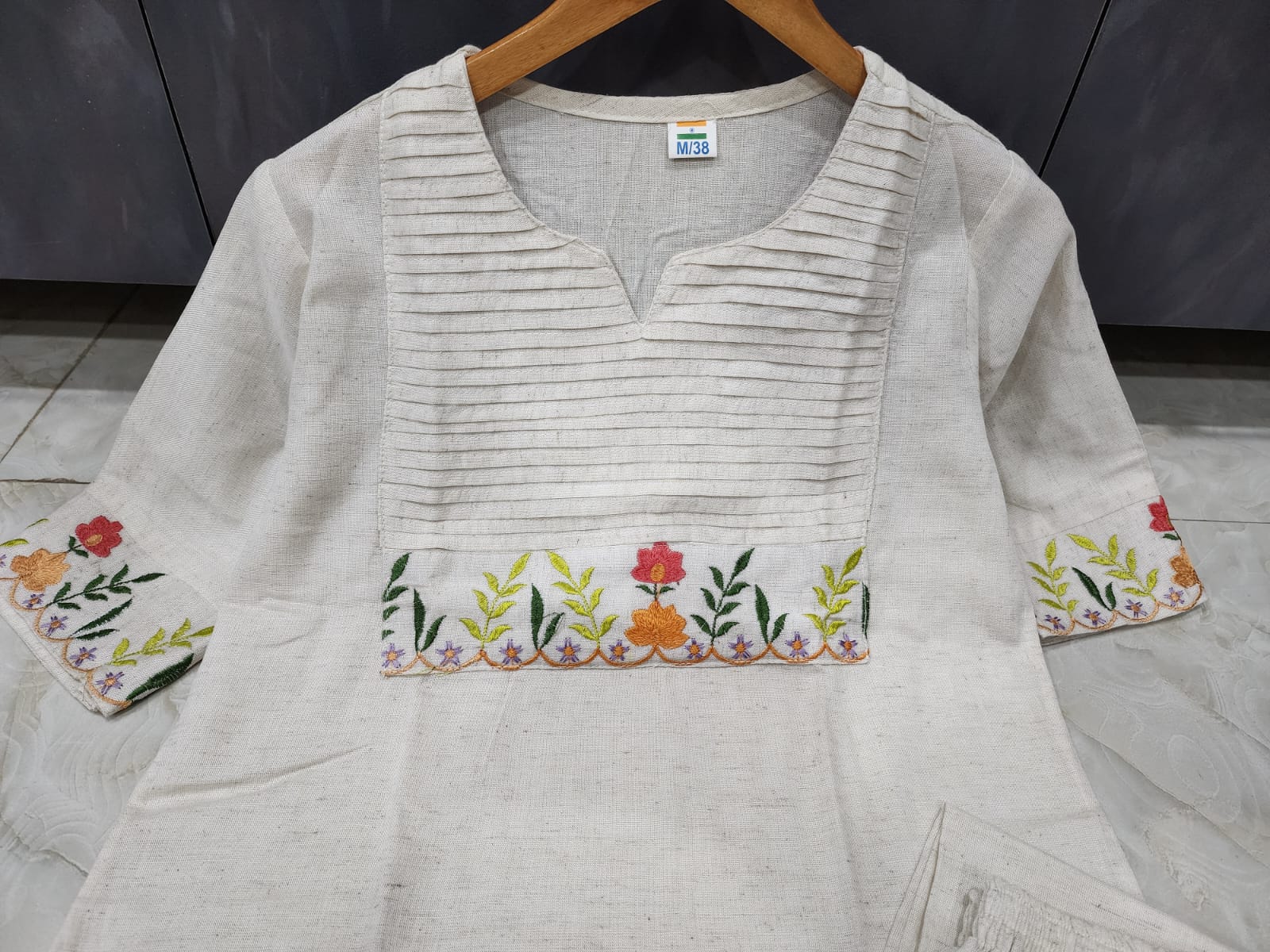 Women's Cotton White Floral Straight Kurta with Palazzo