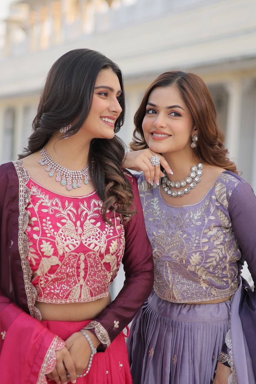 Women's designer Chinnon silk handwork choli lehenga with dupatta sets